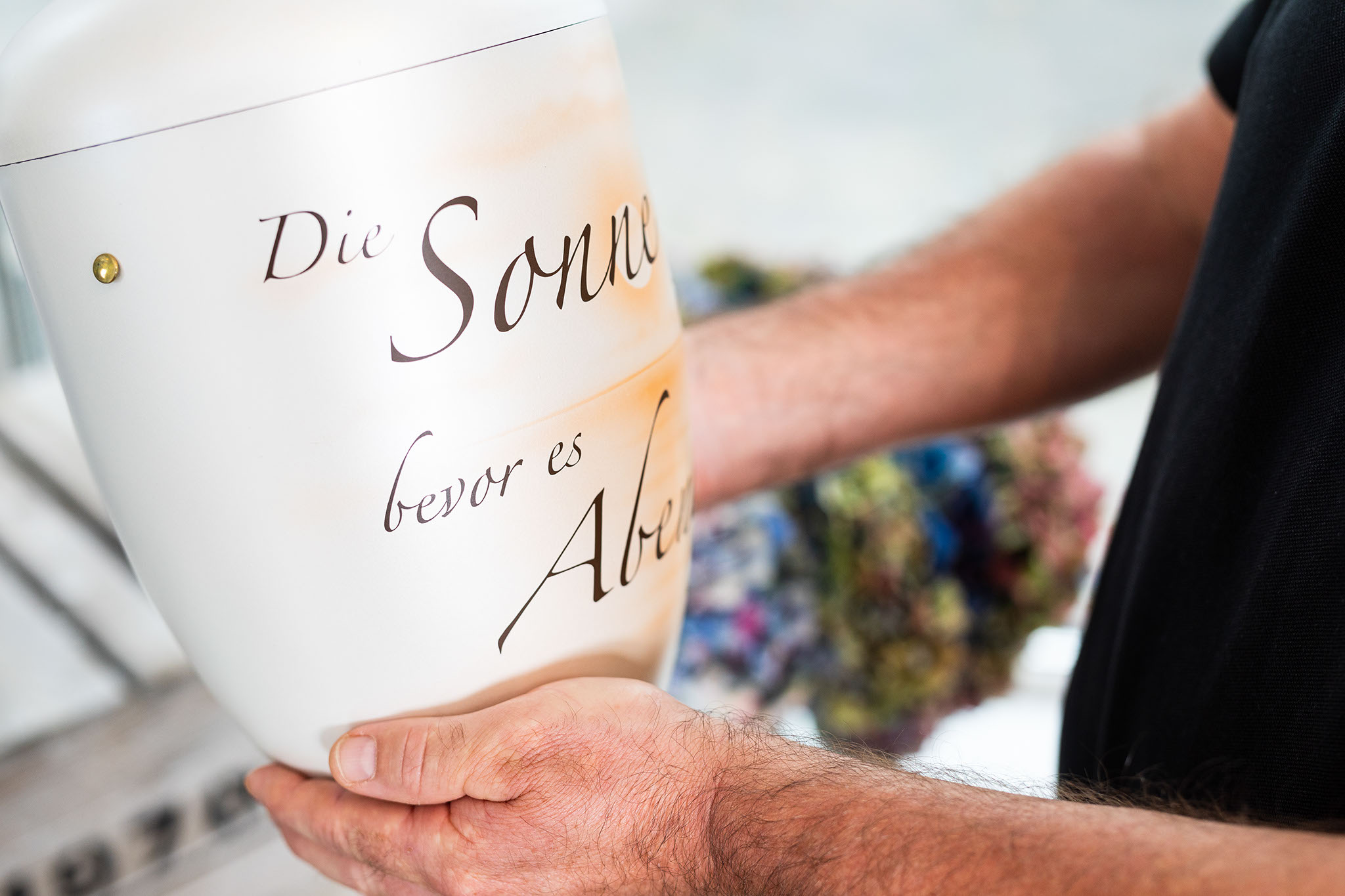 Mit Verständnis und Einfühlungsvermögen gehen wir auf Ihre Wünsche und Vorstellungen ein und möchten mit Ihnen gemeinsam einen nachhaltigen Abschied gestalten. Wir stehen Ihnen jederzeit mit Herz und Verstand zur Seite – das ist unser Versprechen! Vertrauen Sie uns in allen Belangen rund um die Themen Bestattungen und Bestattungsvorsorge.